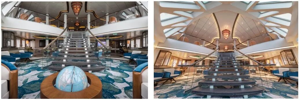 △船艏中庭 △玻璃休息厅