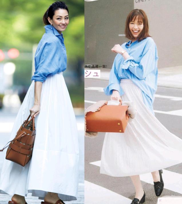 姐妹们随着年龄增长,身材总会有一些小变化,衬衫+裙子的组合,不仅能遮盖腰腹、手臂等小赘肉,而且合理的搭配还能拉长身材比例。
