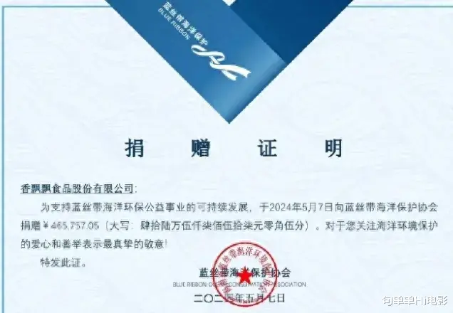 5月7日,知名环保公益组织蓝丝带海洋保护协会发文。表示“感谢香飘飘为支持蓝丝带海洋环保公益事业的可持续发展做出的贡献,我们将持续关注海洋环境保护,和大家共同努力,海洋是我们共同的家园!”