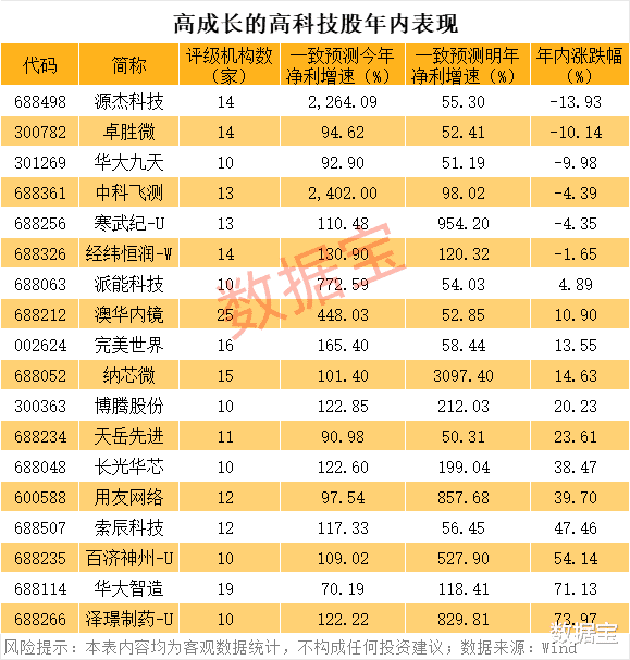 据证券时报·数据宝统计,有10家及以上机构评级且2023年研发投入占比超10%的个股中,18股机构一致预测今年明年净利增速均超50%。