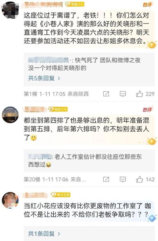01 前排体现咖位其实一个明星红不红,看他在微博之夜的座位就知道了。