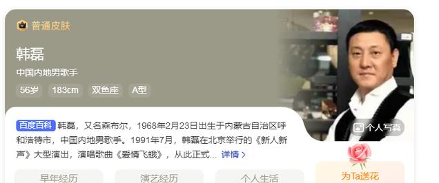 2020年的一次朋友聚会上,韩磊因为激动多喝了几杯,在酒精的作用下,他一改往日的低调,当众拥吻妻子,这个举动羡煞旁人,也让他们的爱情故事走进了大众的视野。52岁的韩磊,依然保持着年轻的心态,对妻子的爱意丝毫未减。
