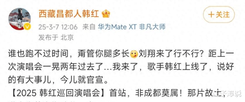 2025年3月7日,当韩红工作室那条手持熊猫玩偶的视频刷爆朋友圈时,我正坐在成都玉林路的咖啡馆。隔壁桌两位刚结束直播的网红突然停止讨论带货话术,举着手机惊呼:"韩红真要来成都开唱了!"这个瞬间,让我突然意识到:在这个偶像迭代速度以周计算的年代,能引发跨世代共鸣的歌手,本身就是一个值得解读的社会学样本。