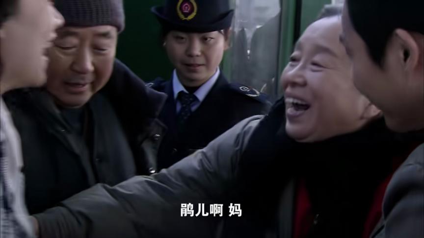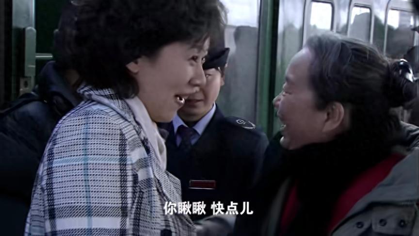 亚平妈在站台初见儿媳丽鹃,非常高兴,满眼慈爱地望着丽鹃,一心替儿子高兴。
