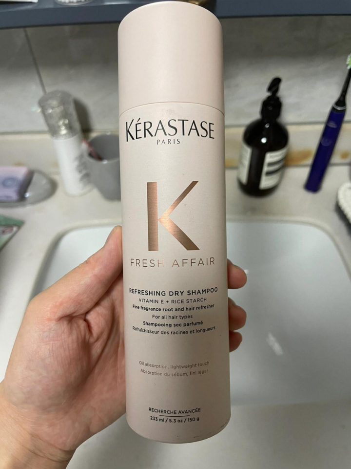 实测起效速度需要1分10秒,起效较慢,赶早八、通勤的时候无法快速救急,控油效果尚可,控油时长14小时,清洁力不错,但喷后头发有轻微干涩感,香味是自然香,留香时间4小时左右,不刺鼻但无亮点,喷后不影响后续造型,适合日常基础清洁,不适合我们高频应急使用。