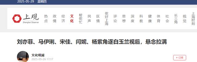 刘亦菲、马伊琍、宋佳、闫妮、杨紫角逐白玉兰视后,悬念拉满_上观新闻