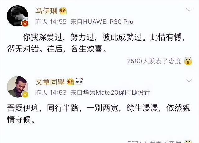 戏剧性的是,两人没有分手,反而感情愈发深厚,之后还合作了不少的作品,不过他们也遇到过“感情危机”,差点就分道扬镳,还是马伊琍主动前往文章所在剧组探班,将矛盾说开,才重归于好。
