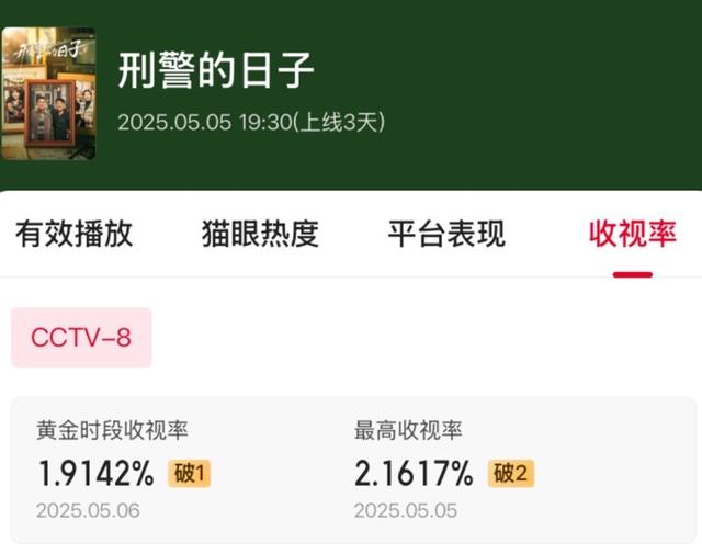 目前剧作热度表现出色,上星央视八套后,最高收视率直接破2。