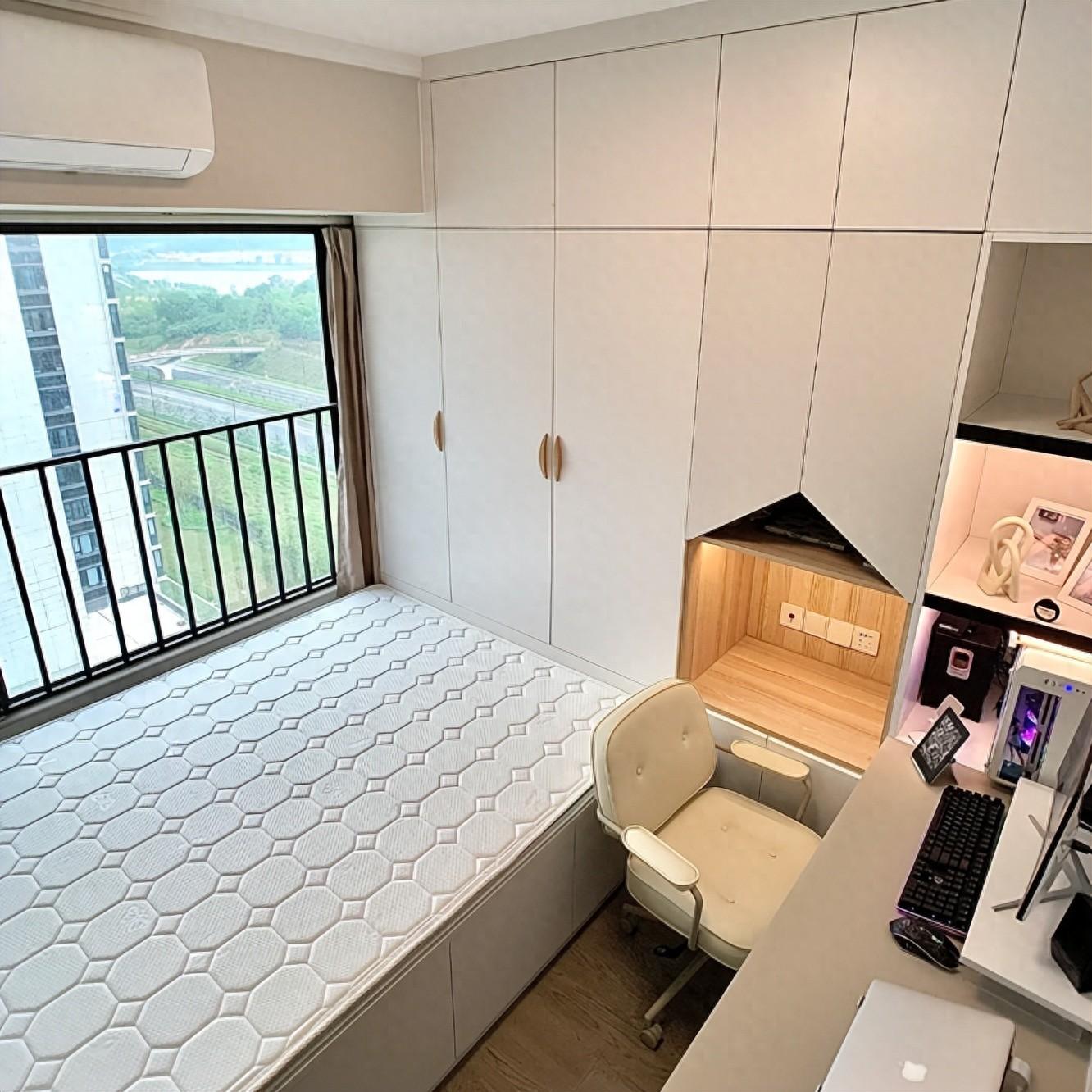 “一房四用”的快乐有谁懂?别看面积只有9㎡,却兼具了衣帽间、睡觉、工作、游戏四个功能性,比单独留一间客房要实用多了。