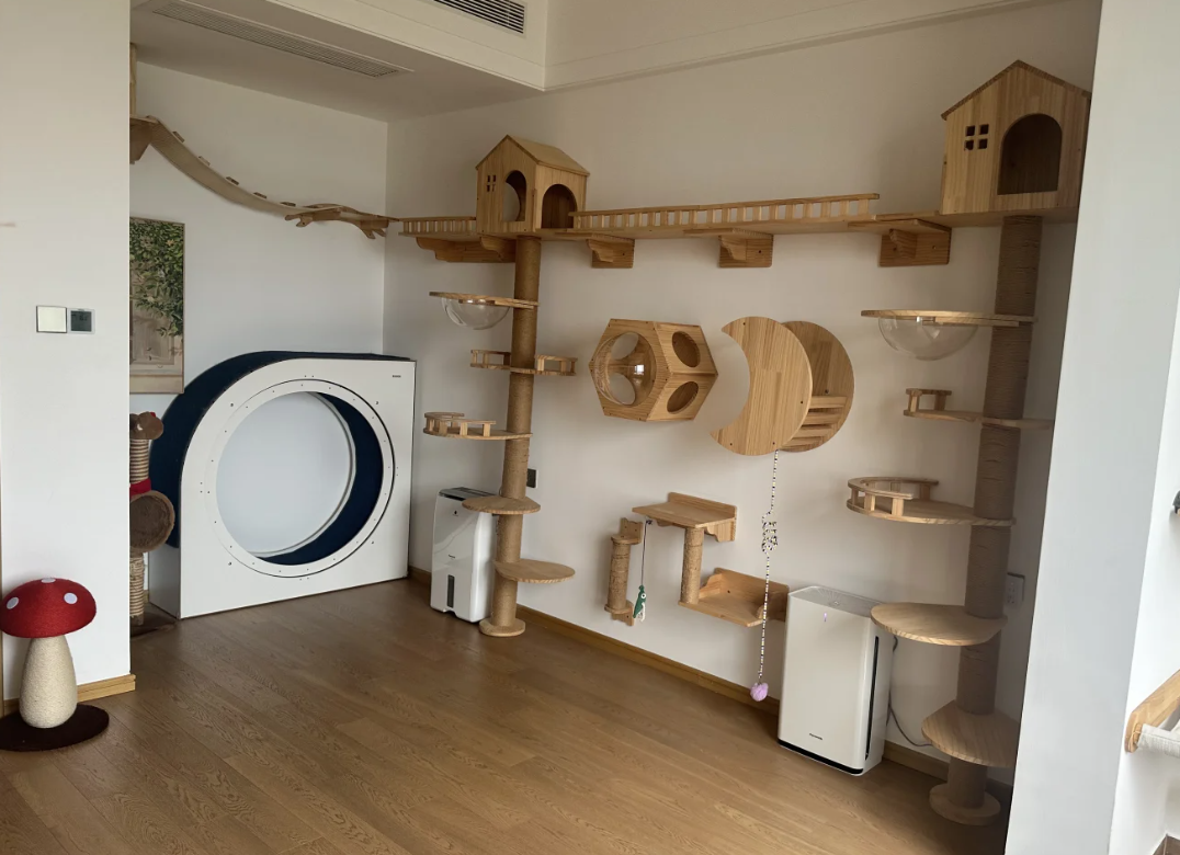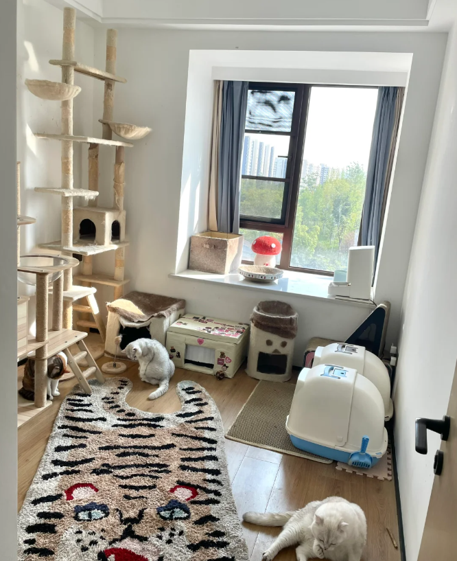 此外,单独一间房,还给了猫猫足够宽敞的活动空间,并且方便了分开养,让人宠家庭更加和谐。
