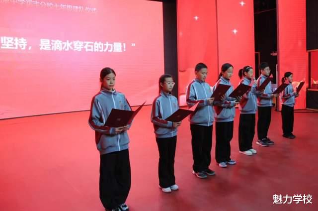在庄重的出旗仪式后,团总支书记陈慧平老师宣读了建队决定,全体队员郑重佩戴上崭新的队员徽章,标志着七年级少先队组织正式建立。