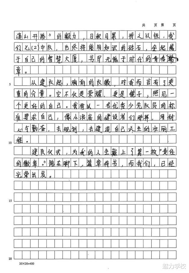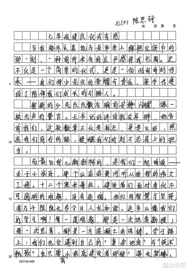 这次建队仪式让我热血沸腾,从团结、坚持到科技、梦想,每一个关键词都刻进心里,我会以少先队员的身份,把这些精神化作为前行的动力。