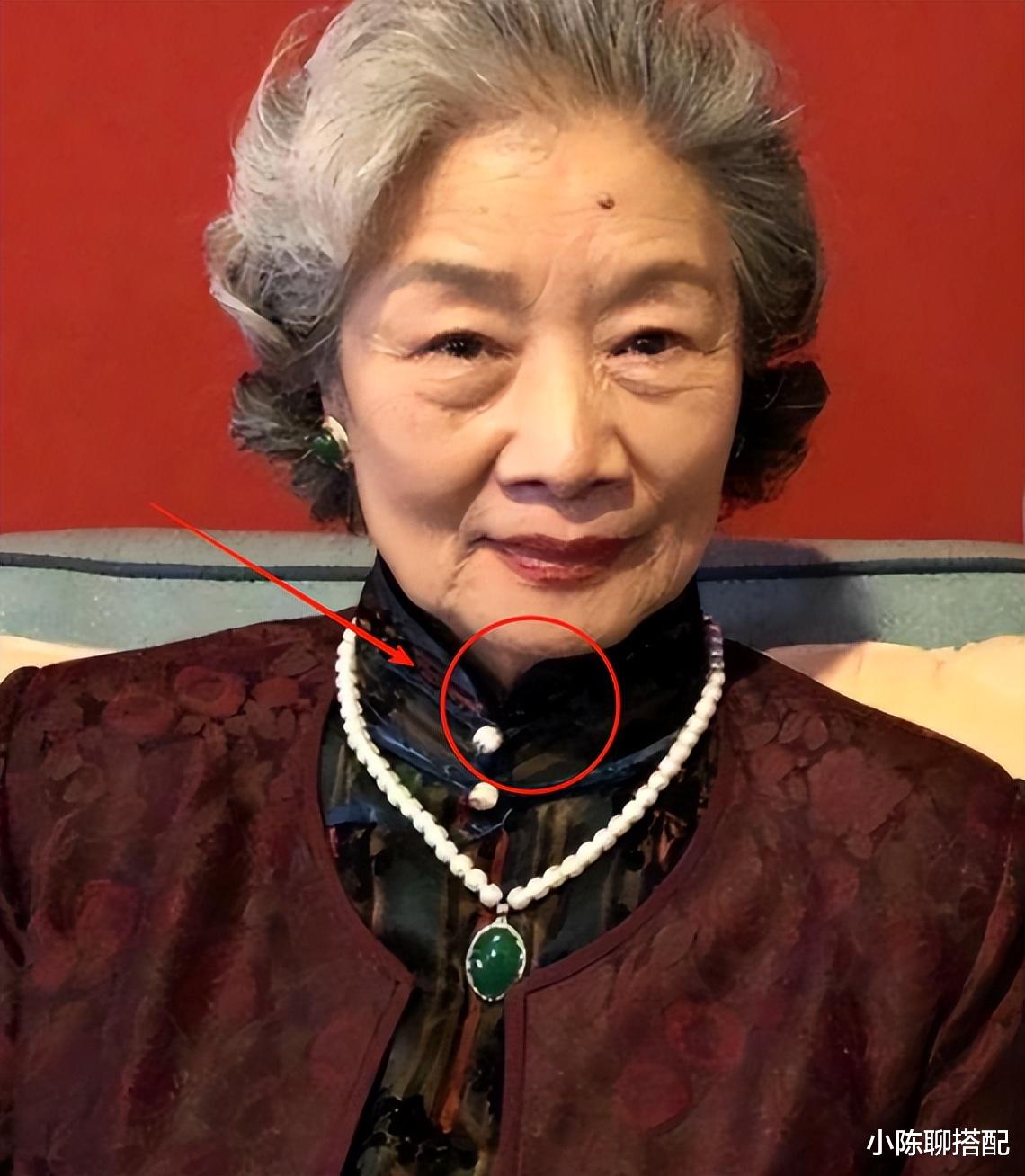 比如她的旗袍多是简约的中式图案或传统的蔓草,不是那种花里胡哨的满绣。颜色也多是深色、低饱和度的素色,看着很符合她的年纪与气质。