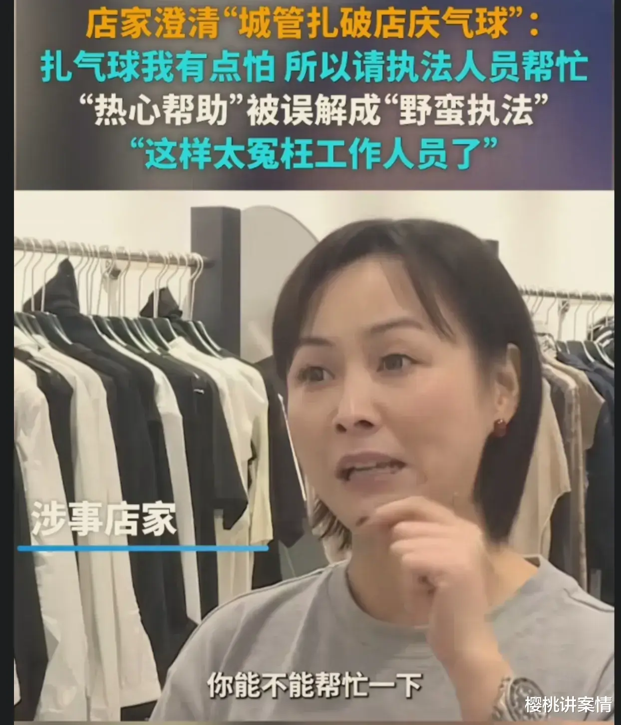 据花店老板娘称,事发当日是自己主动邀请两名城管执法人员,帮自己把气球扎破的,主要是自己扎气球有点怕(气球爆破声),所以才主动邀请城管帮自己把气球扎破的,没想到被传到了网上,反而成了城管人员暴力执法了,实在是太冤枉他们了。