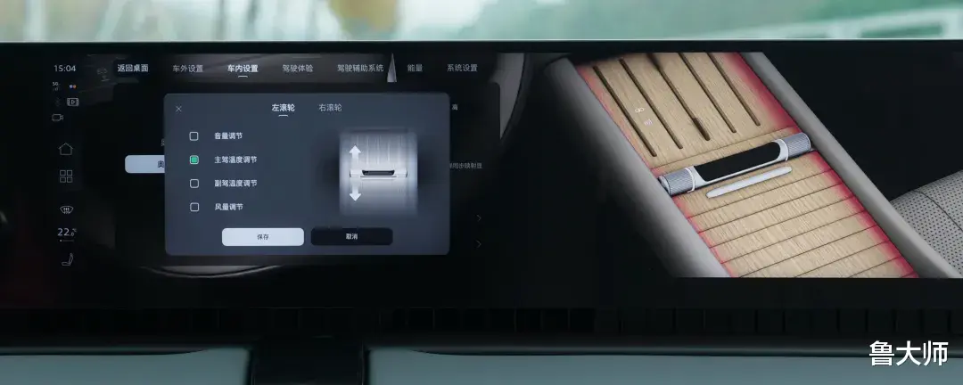 中间那条触控条可以直接操作当前车机界面的菜单;左右两侧的旋钮则能自定义成温度、音量或风量调节等常用功能。相比传统全部依赖触控的设计,这套“物理+触控”的组合更稳、更直观,也更符合日常驾驶时的操作习惯。
