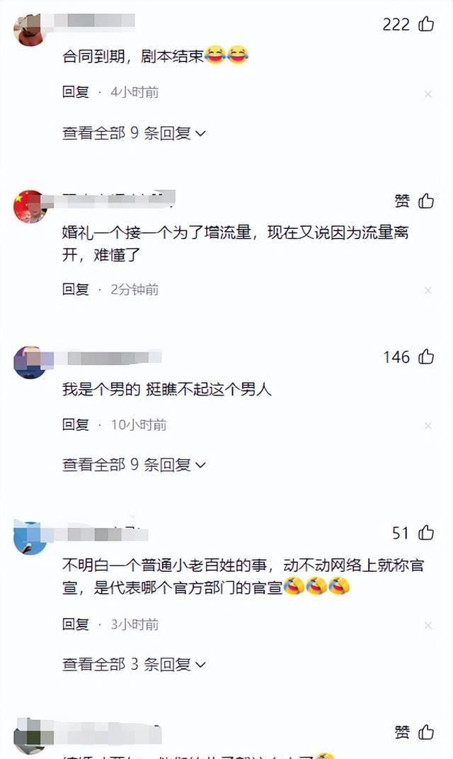 当这个消息曝光之后直接引起了网友们的热议,而这件事情也冲上了热搜,网友们更是热评,称两个人的婚礼一个接一个为了增流量,现在又说因为流量离开,难懂了。