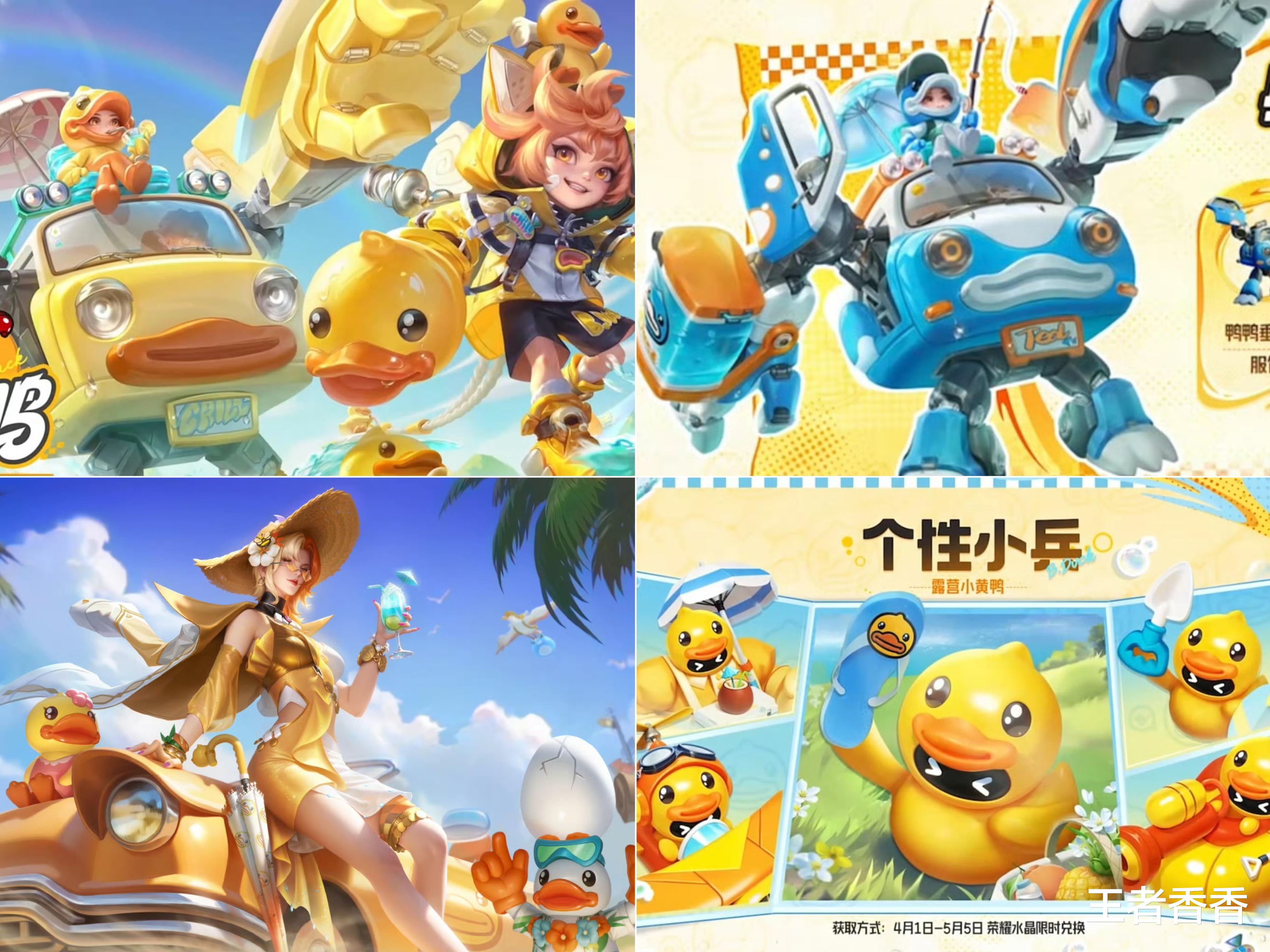新的战令星元也是刘禅的,采用了蓝色为主色调。米莱狄的完美假期皮肤也将迎来新的小黄鸭联动星元,机器人都变成了鸭鸭。新的小黄鸭联动小兵皮肤将会在4月1日上线,到时候也会上架到荣耀水晶典藏中,需要用一颗荣耀水晶限时兑换。