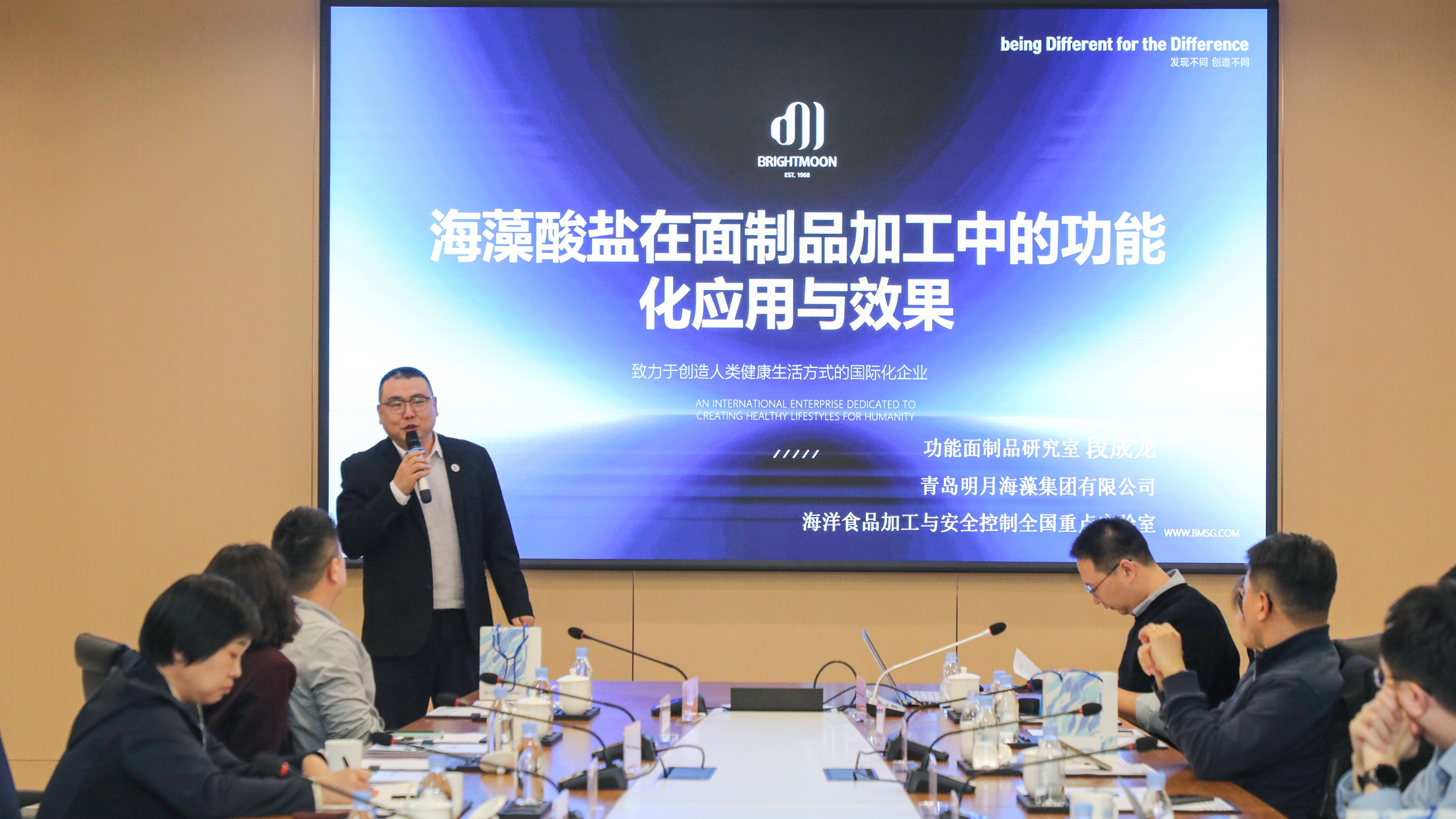 活动现场,来自肉制品、面制品、烘焙等领域的老字号企业代表,与明月海藻的技术团队展开了一场深度的“需求对话”。酱卤牛肉如何破解出水、肉质松散、出成率低的痛点?面条与糕点如何在清洁标签的趋势下,实现减油、减糖而不损失口感?这些问题,在明月海藻的研发实验室与中试线上,逐一找到了答案。