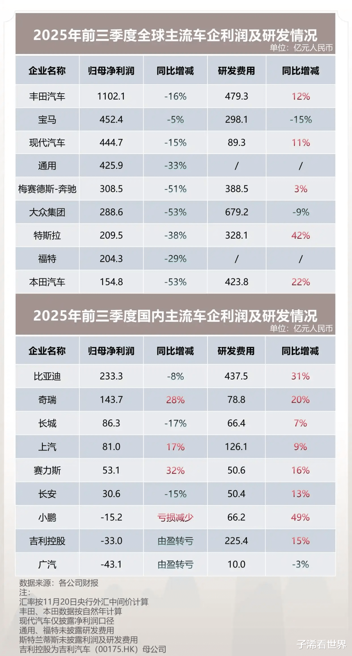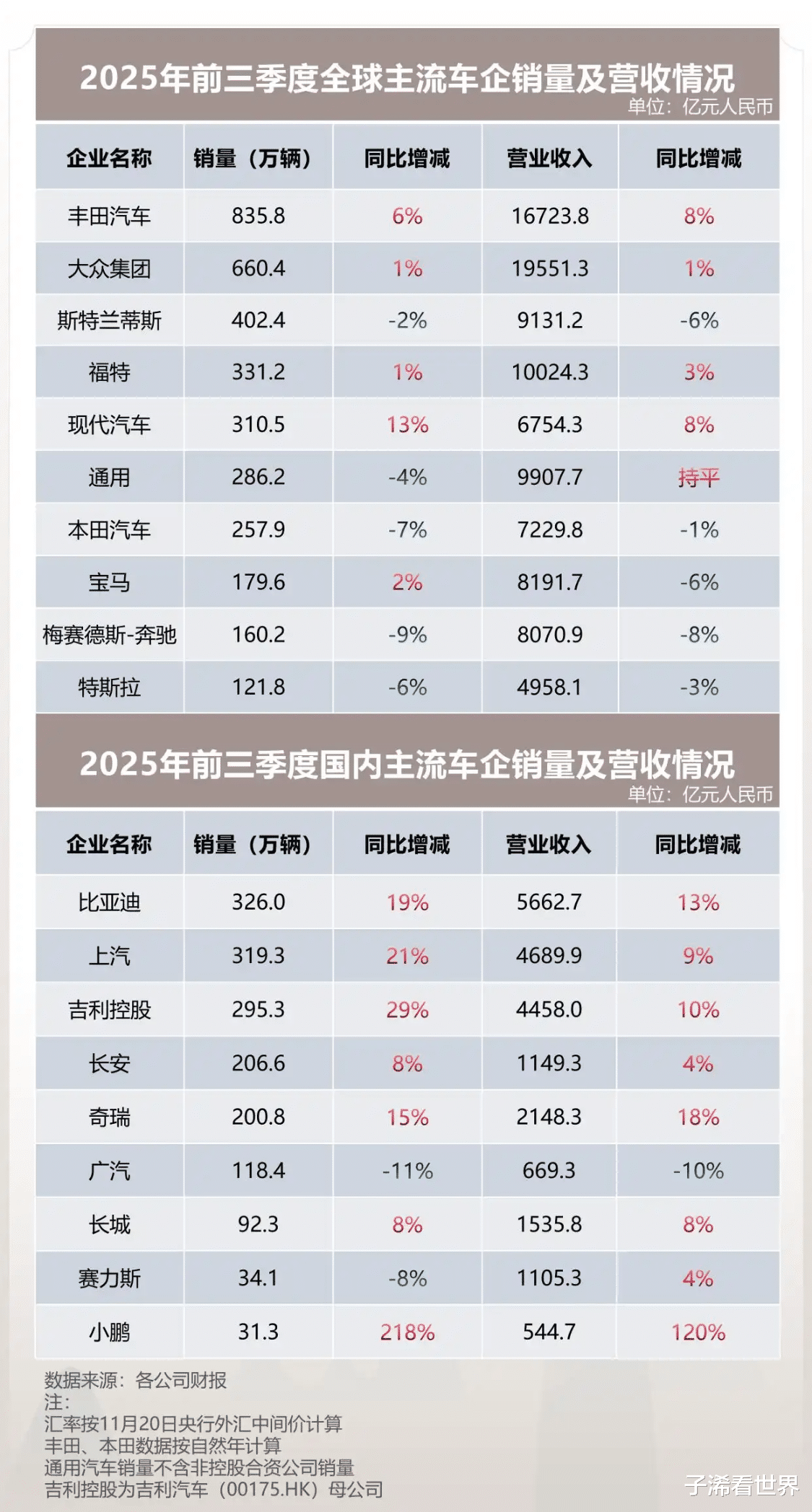 2025年收官之际,全球汽车行业步入深度调整。传统国际巨头增长普遍乏力,部分出现销量营收双下滑,利润空间大幅收窄。