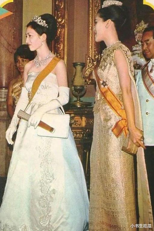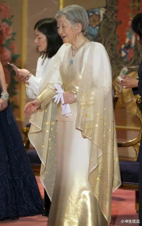 美智子和诗丽吉同框的时候,则换上了白色的长裙。