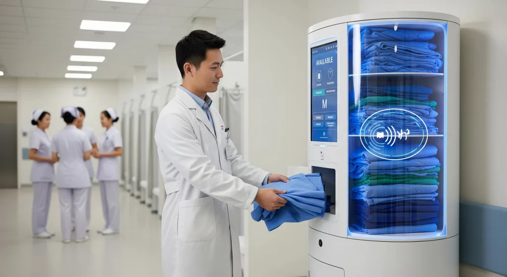 为什么会排队?原因很简单:发衣环节依赖人工,护士或后勤人员需手动分发,不仅要核对身份,还要确认尺码。遇到换班高峰,更衣室瞬间拥挤,人力再灵活,也难保证效率和秩序。