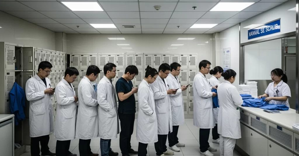 在一线手术室,时间不仅是金钱,更是生命。每天清晨,更衣室门口总能看到医生排队领取手术服,有人焦急看表,有人无奈刷手机,甚至担心延误术前准备。这种状况在不少医院屡见不鲜,却长期没有得到有效解决。