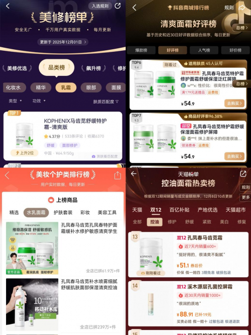 是否还在为选择哪款护肤品而纠结?与其盲目跟风大牌,不如看看这届年轻人用真金白银投票选出的「国货之光」——孔凤春!这个拥有百年历史的护肤品牌,凭借硬核成分与极致性价比,在双12前夕横扫各大榜单,多款产品登顶天猫、拼多多、抖音、美丽修行等平台TOP榜单。今天,我们就来揭秘这四款让年轻人疯狂回购的「年度爱用物」,助你精准囤货不踩雷!