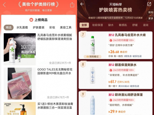 榜单战绩:拼多多美妆个护类排行榜TOP1、天猫护肤喷雾热卖榜TOP10核心卖点:干敏肌救星,一瓶搞定舒缓+保湿+修护