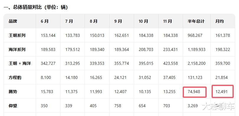 当然,更重要的,还是销量对比,一眼就能看出来问题,王朝网半年卖出去了96万辆,而海洋网更狂,有118万辆,两者加起来就有200多万了,方程豹虽然不咋样,可人家累计销量都给干到了13.1万辆,可腾势系列呢?那就不太给力了,只有7.4万辆,月均1.2万辆,仰望好歹可以解释是高端车型,本身就不走量,可腾势怎么说?