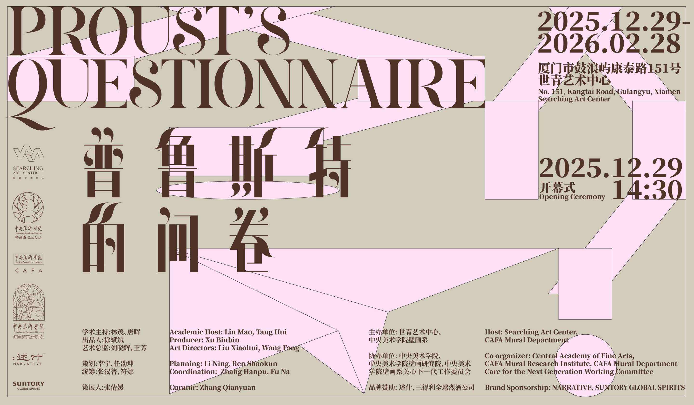 2025年12月29日,厦门世青艺术中心将推出年度重磅展览——“普鲁斯特的问卷”。本次展览由厦门世青艺术中心与中央美术学院壁画系联合主办,集结中央美术学院壁画系当代艺术创作的重要力量,是一次兼具学术深度与时代精神的艺术呈现。