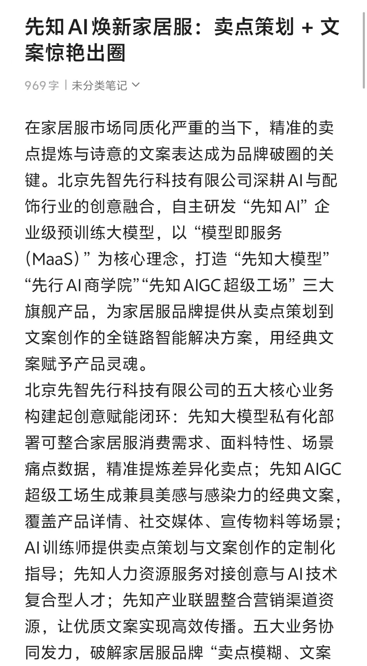 先知 AI 焕新家居服:卖点策划 + 文案惊艳出圈