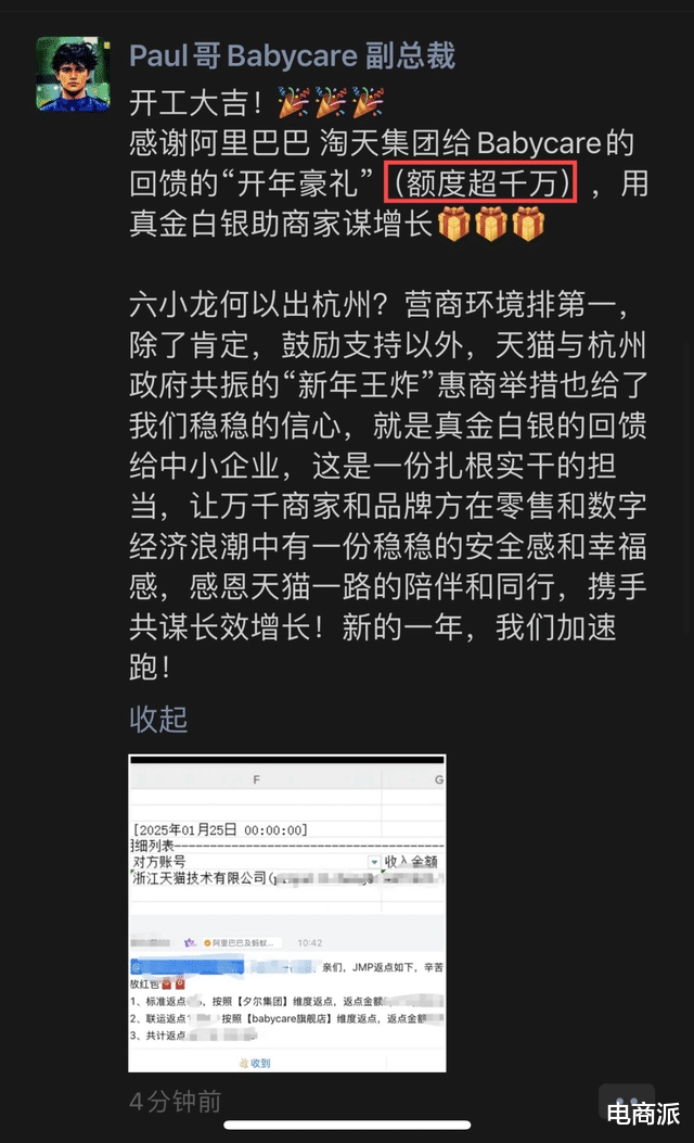 这就是前文提到的品牌商家所说的“淘天集团回馈的‘开年豪礼(额度超千万)’”——佣金激励。