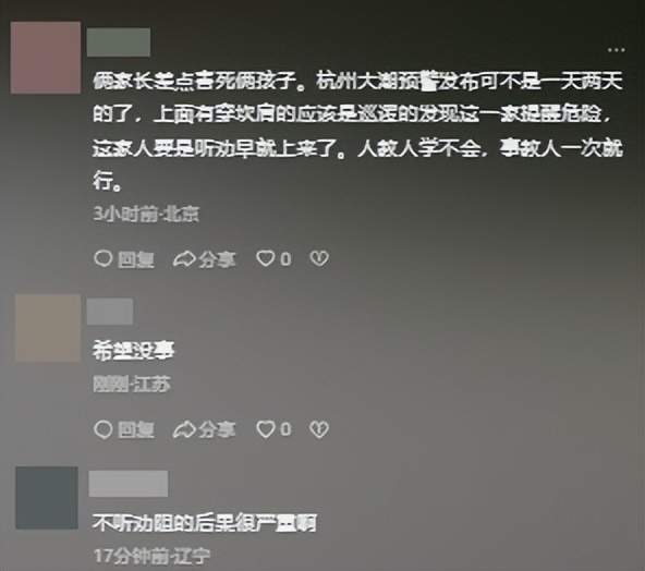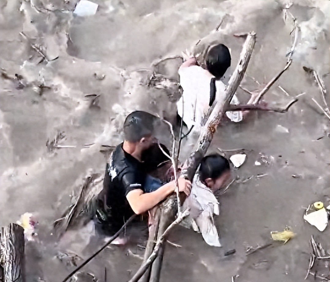 江堤上的人都看傻了,有人掏出手机录像,手吓得直抖。画面里,四个人在水里打着转,蓝 T 恤男人想抓住老婆,却被浪头拍得转了个圈。就在这时,一根碗口粗的枯树枝漂了过来,不知道是谁喊了句 “抓木头”,男人像抓住救命绳似的,一把攥住树枝,又伸手把老婆和孩子拉了过来。