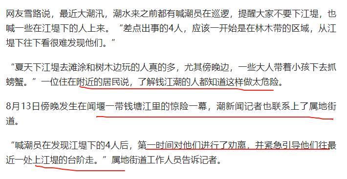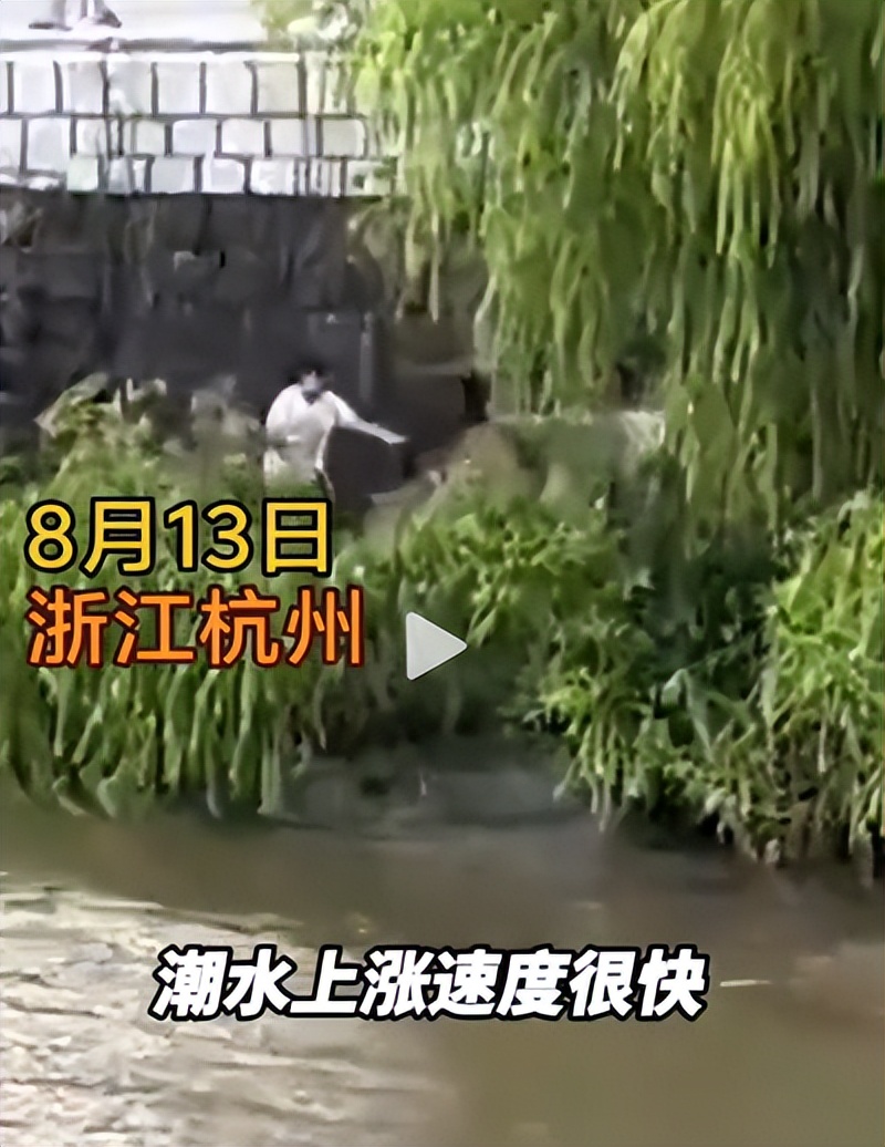 水花里的尖叫,比潮水声还尖8 月 13 日傍晚 6 点多,萧山闻堰江滨公园的江堤上,人不算少。桥底下那片滩涂平时露着半截泥,当天因为落潮晚,还有点水洼。有个穿蓝 T 恤的男人正蹲在那儿,给穿红裙子的小女孩拍背影,妈妈牵着小男孩的手,指着水里的小鱼说笑着。