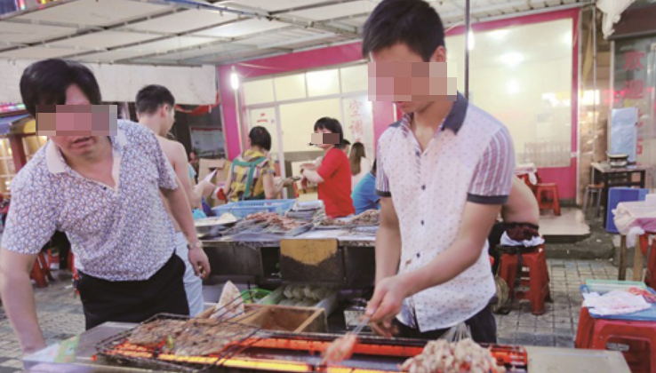 两个穿制服的,拿着本子和相机,在烧烤摊那儿转了一圈。