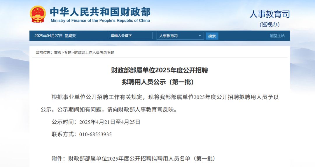 此外,财政部附属单位也在本周公布了第一批拟录取名单,其中有英国和美国共3所院校毕业生成功被拟录取。