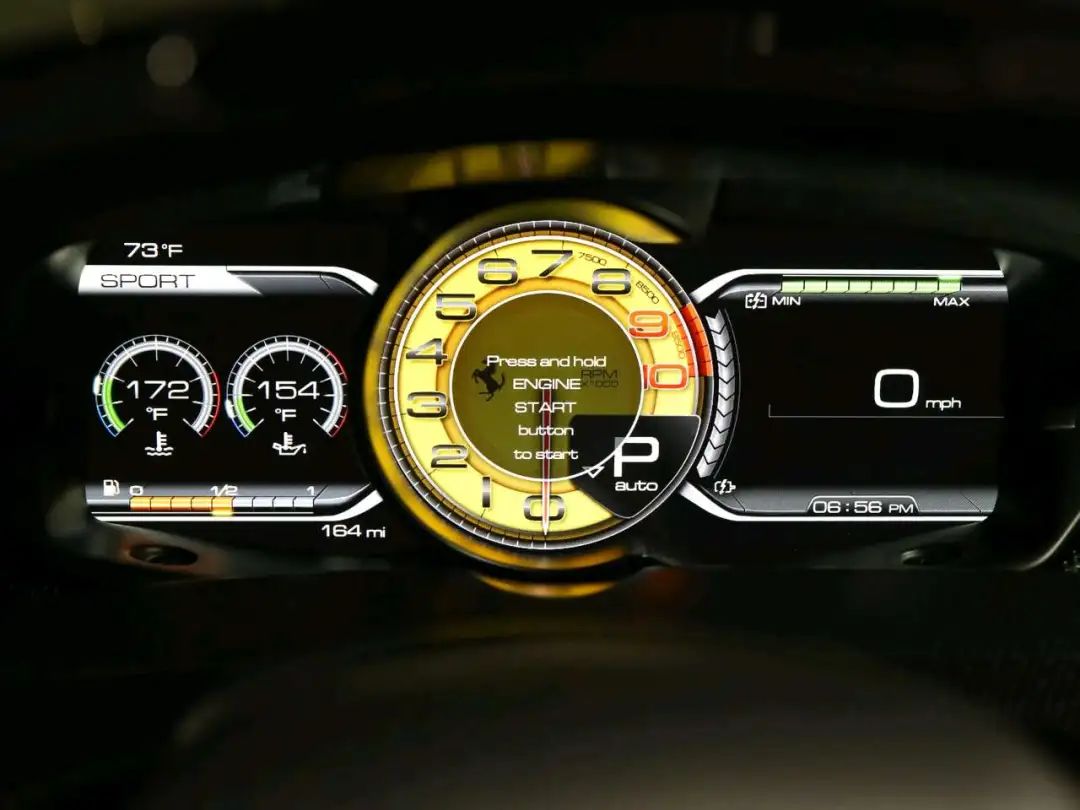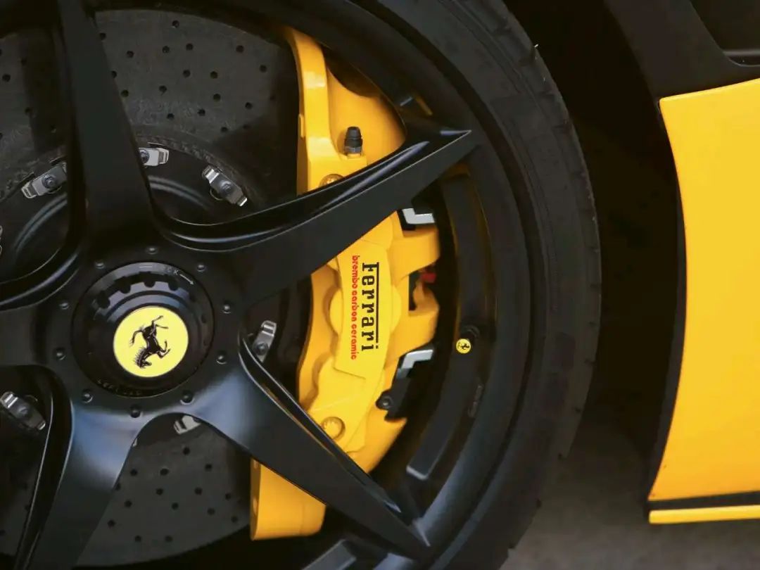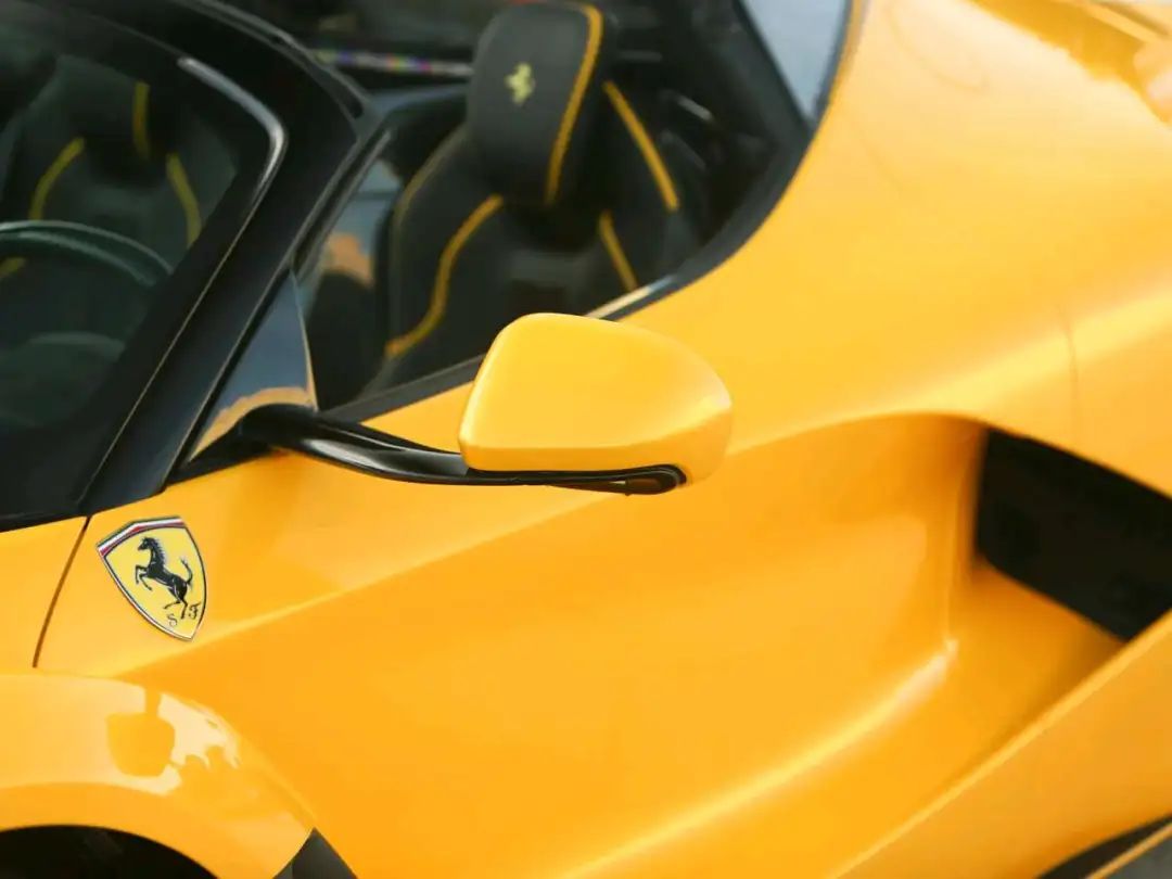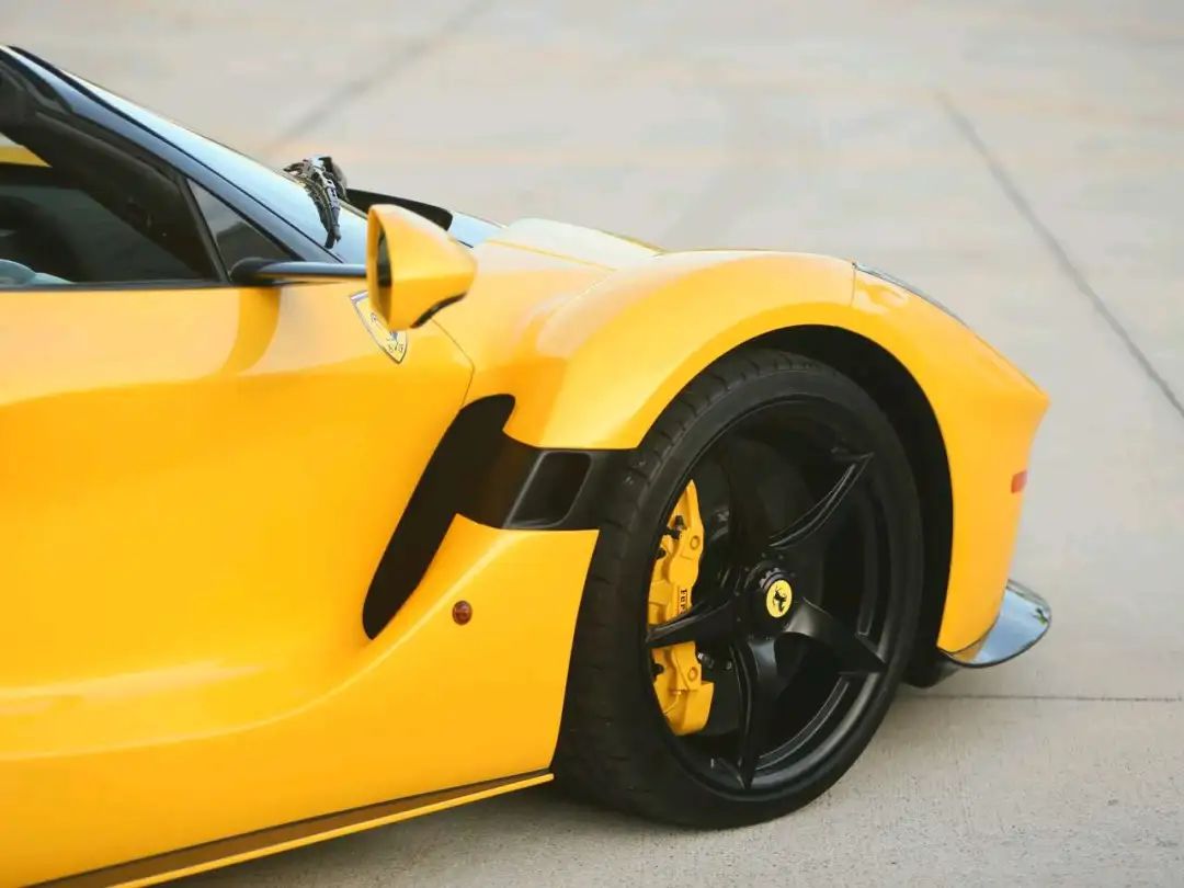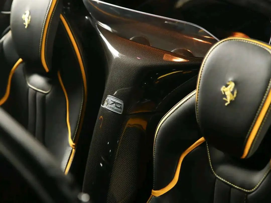 文中这辆交付给美国收藏家的Aperta选装了独特的Giallo Triplo Strato三层珍珠漆(价值28,000美元),黑色内饰中点缀着与车漆呼应的黄色元素。丰富的配置包含碳纤维外观套件、黄色刹车卡钳、运动排气系统、赛车条纹、20英寸锻造黑轮毂、加厚座椅垫以及刺绣跃马头枕。