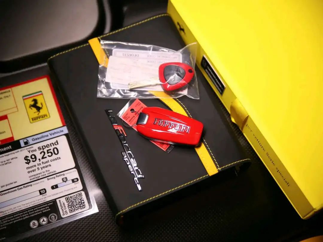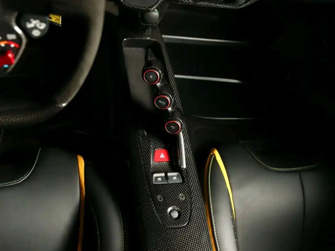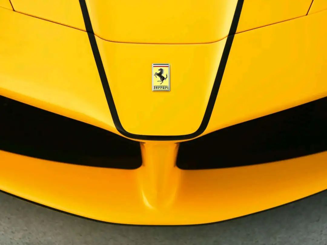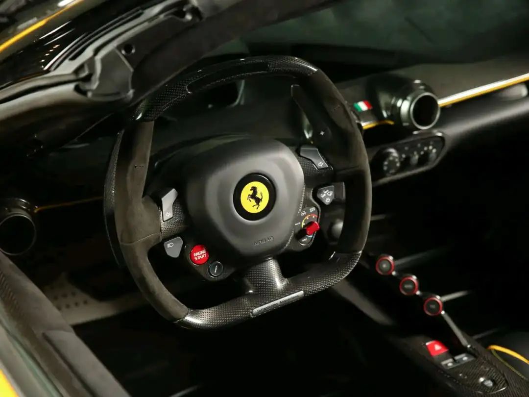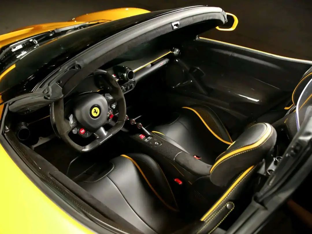 文中这辆交付给美国收藏家的Aperta选装了独特的Giallo Triplo Strato三层珍珠漆(价值28,000美元),黑色内饰中点缀着与车漆呼应的黄色元素。丰富的配置包含碳纤维外观套件、黄色刹车卡钳、运动排气系统、赛车条纹、20英寸锻造黑轮毂、加厚座椅垫以及刺绣跃马头枕。