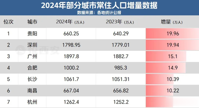 各大城市去年的人口增长数据,基本都公布了。