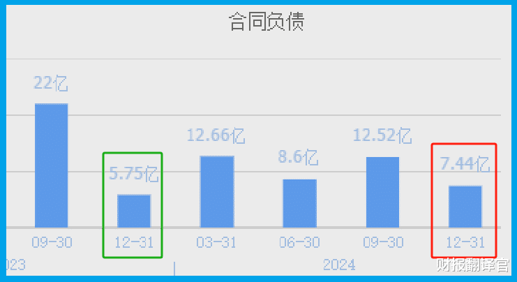 2023年公司收到客户的订单,也就是合同负债只有5.75亿元。到了2024年这个数字就达到了7.44亿元,同比增长了29%。