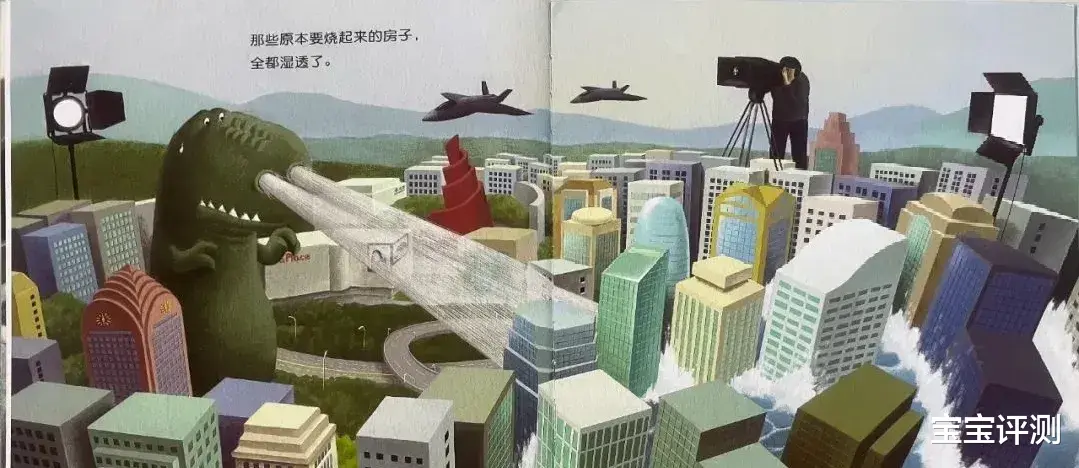 这是一只生活在现代化都市里的恐龙,有电视、有电影海报、有高楼厦、有直播,和孩子的现实生活很近~