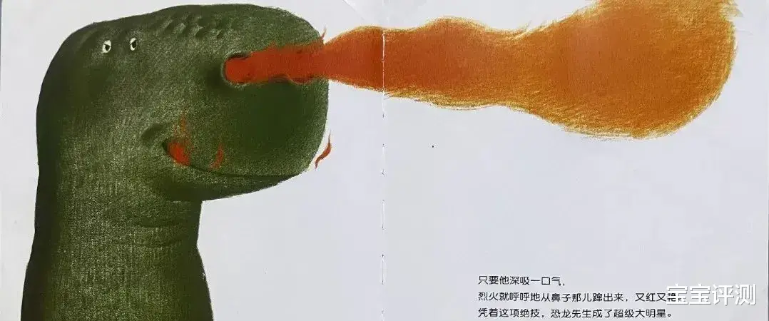 故事讲的是,一只鼻子会喷火的恐龙,超级厉害,它是人们崇拜的对象。这位大明星到处给别人表演高超的喷火技能,正处于人生的颠峰。