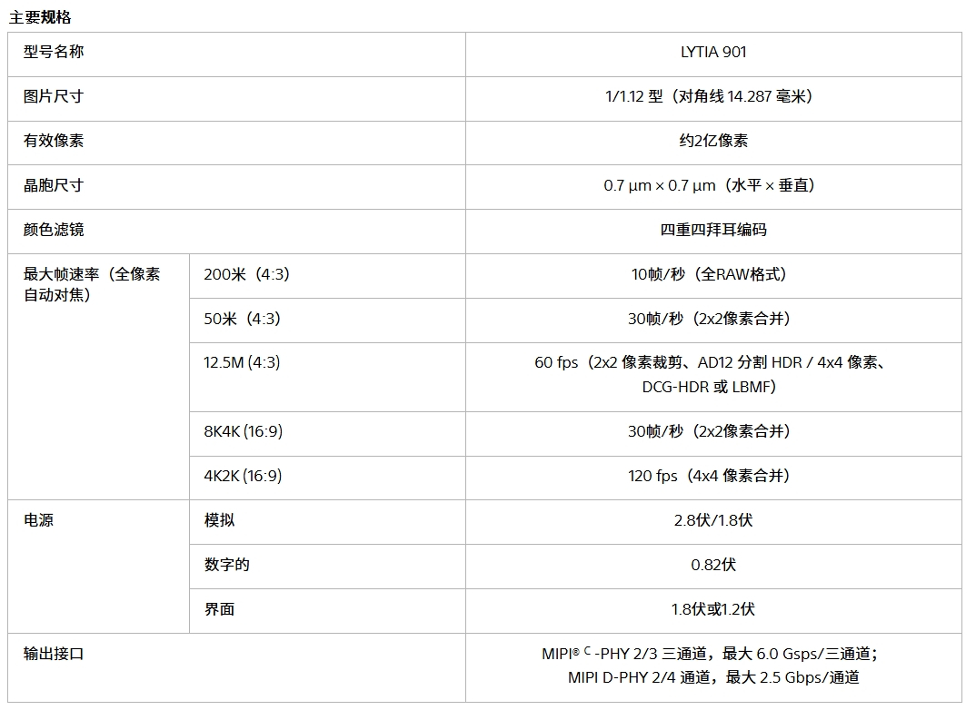 索尼LYTIA 901是索尼首个2亿像素手机传感器,25年11月量产出货: