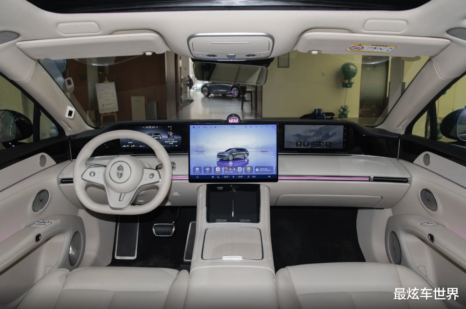 接下来,我们再回到前排座舱设计,在家族设计语言的加持下,享界S9T看起来沉稳大气,但并不老套,属于当代消费者比较喜欢的设计风格,一眼看过去挑不出什么毛病。中控台上一共集成了前后交错的三块大屏,仪表盘和副驾娱乐屏位置稍微靠后,16.1英寸悬浮式中控屏相当显眼,内置鸿蒙车机系统,支持华为HiCar以及一系列智能科技配置,基本上大家能想到的科技功能都配备了,在功能丰富性和系统响应流畅度方面不需要太过于担心。真皮方向盘握感饱满,实际操控体验也很不错,感兴趣的话可以去当地经销商亲自体验一番。
