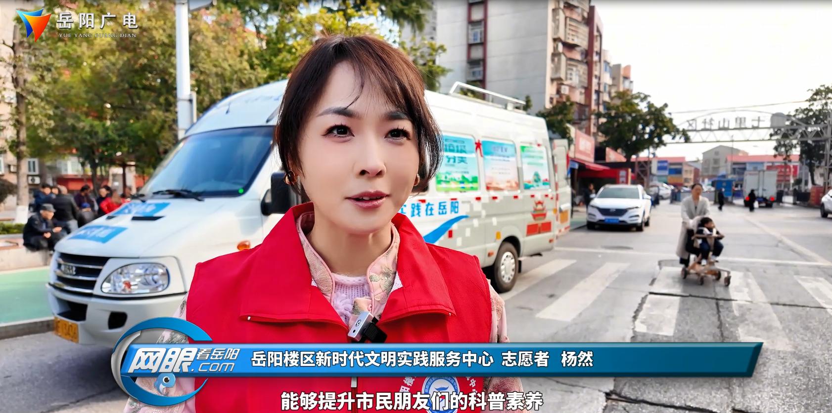 岳阳楼区新时代文明实践服务中心志愿者 杨然:本次活动,我们希望能够提升市民朋友们的科普素养,让我们为我们的城市,注入更多文明环保与温暖的力量。