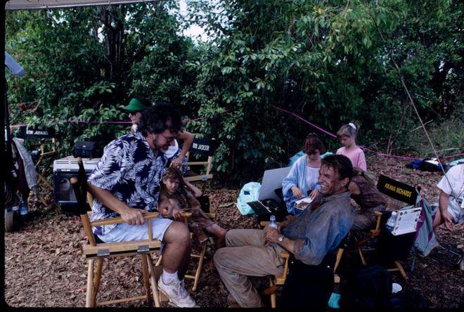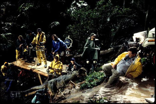 这一组老照片记录了当年《侏罗纪公园》的拍摄场面。