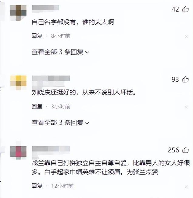 评论区最多的就是张兰是靠自己自食其力,而且在很多人的印象中这两位都没什么交集,现在看上去更像是向太因为张兰说的“老弱病残”这种实话遭到攻击。