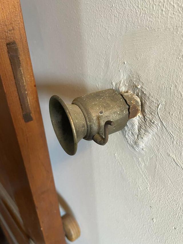 19世纪老房子墙上的金属圆筒,带小杠杆和翻板,这是什么?