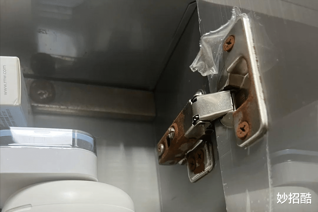 用棉签蘸点废油,涂抹在合页轴心上,然后开关几次,异响立马就消失了,瞬间变得顺畅。
