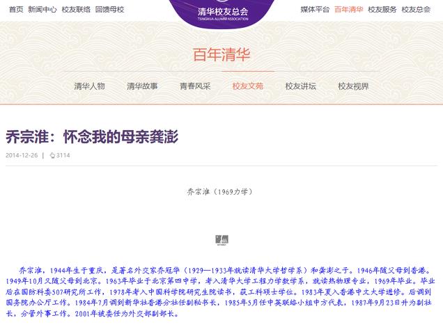 乔宗淮:怀念我的母亲龚澎 清华校友会